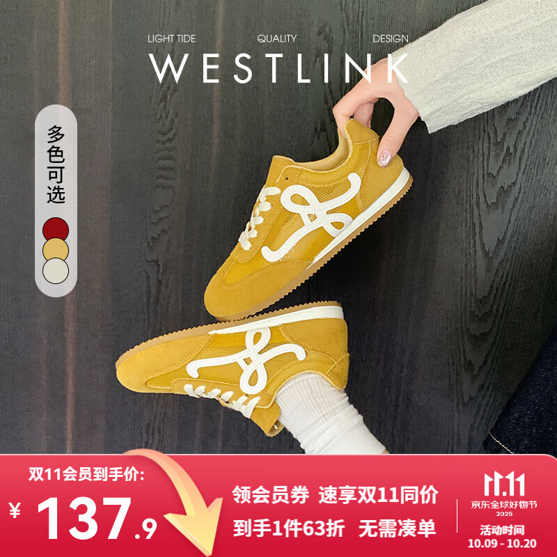 西遇复古德训鞋女2025新款春夏爆款美式百搭运动鞋轻便休闲鞋 浅黄 35 (225)