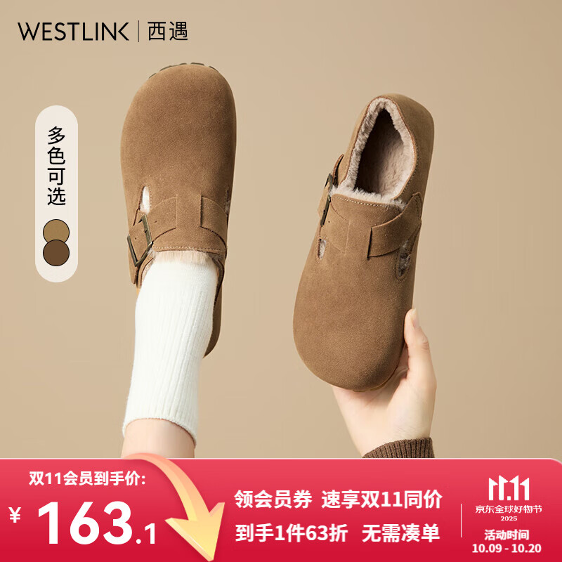 西遇全包勃肯鞋女加绒2025冬季新款软底外穿棉鞋保暖一脚蹬毛毛鞋 (预售20天)卡其色 37 (235)