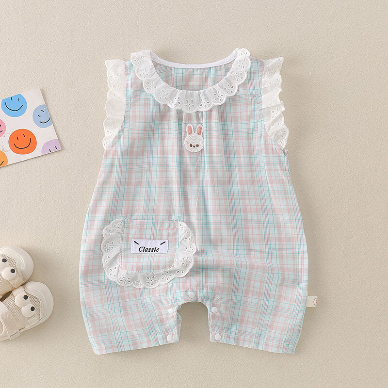 温小影 HELLO YING新起点服饰新生儿衣服夏季薄款哈衣女宝宝夏装连体衣婴儿a类衣服 短爬 66cm