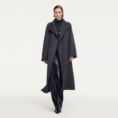 百亿补贴:歌莉娅冬季新品双面呢插肩袖大衣配腰带1ESC6N0D0