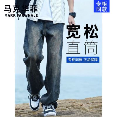 百亿补贴:马克华菲美式复古水洗做旧直筒牛仔裤男士潮牌秋季宽松拖地阔腿裤