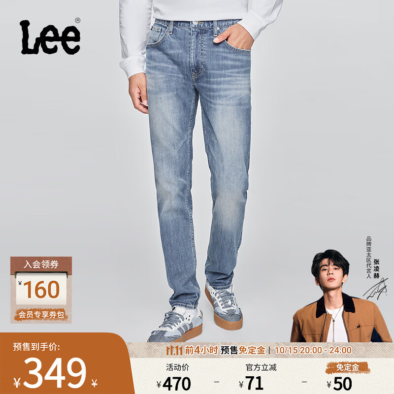 Lee【张凌赫代言】25新品舒适中腰锥形中蓝色男牛仔裤潮流显瘦潮 中蓝色 32