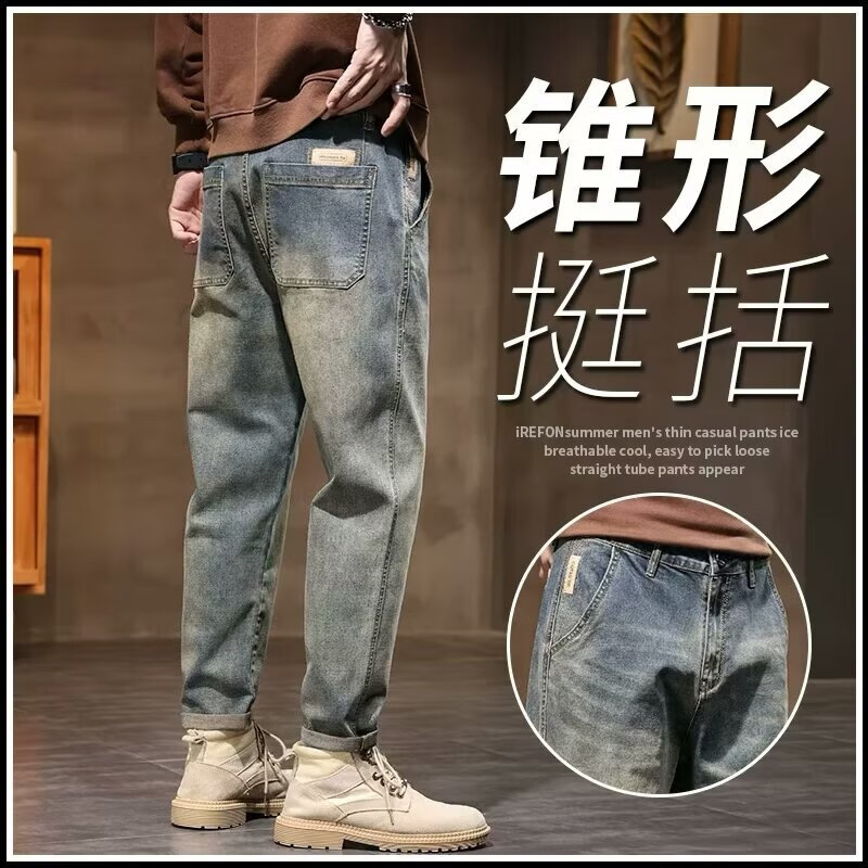 百亿补贴:马克华菲2025秋季水洗牛仔裤新款美式复古蓝宽松直筒男款长裤