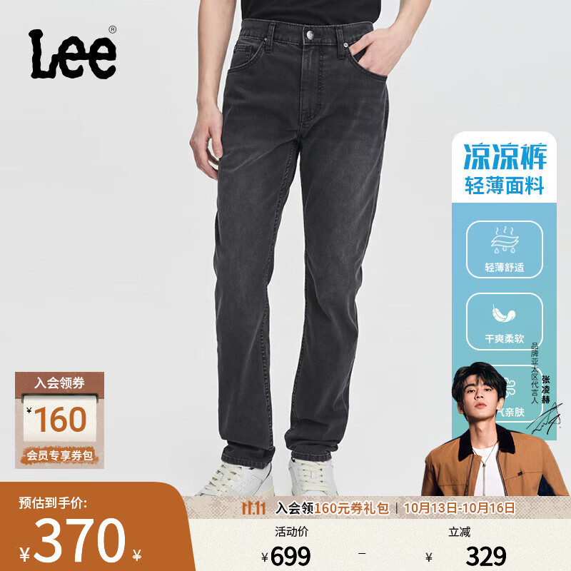 Lee【张凌赫代言】凉凉裤舒适锥形轻薄黑灰色男牛仔裤休闲潮流 黑灰色 36