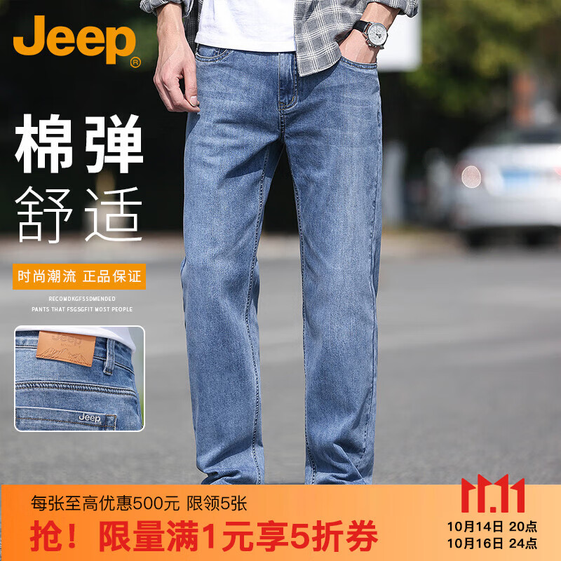 吉普(JEEP)牛仔裤男春秋季直筒宽松休闲裤子男士潮流百搭男裤 磨白蓝 33