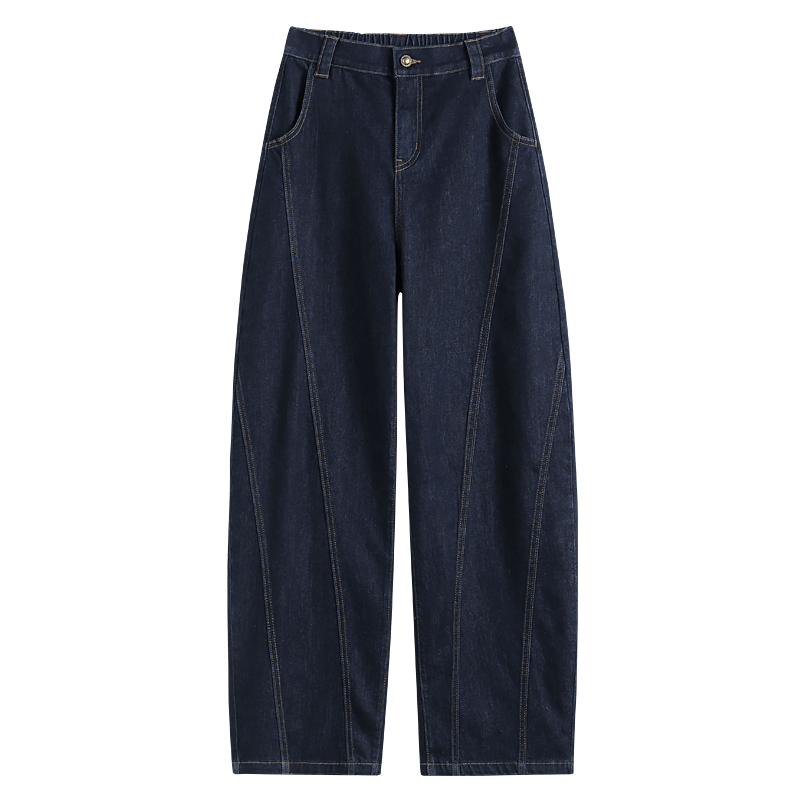 茵曼 时尚阔腿显瘦香蕉裤女2025春秋款百搭高腰宽松镰刀牛仔裤子