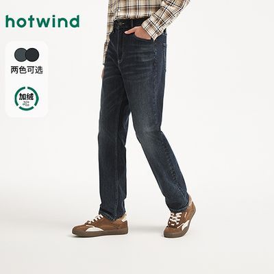 百亿补贴:热风男士牛仔裤加绒长裤2025年冬季新款合体小锥牛仔裤宽松宅脚