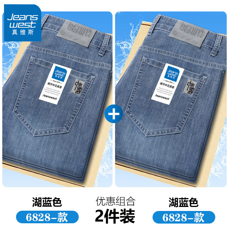 百亿补贴:真维斯(Jeanswest)牛仔裤男春秋季2025新款弹力商务修身直筒男士潮流百搭休闲长裤子 【两件装】6828湖蓝色+湖蓝色 28 (腰围2尺1)【90-100斤穿】