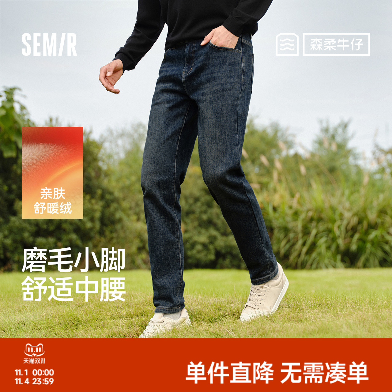 森柔牛仔|森马牛仔裤男款磨毛小脚裤子通勤基础百搭冬季长裤青年
