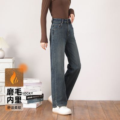 百亿补贴:ETBOITE【加绒直筒牛仔裤】冬季款女士高腰时尚显瘦百搭阔腿裤
