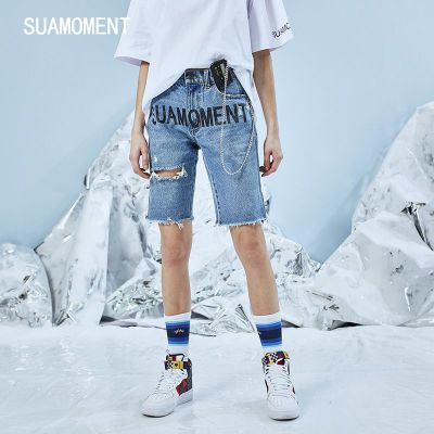 百亿补贴:SuaMoment男士牛仔短裤五分中裤破洞牛仔裤夏季薄款潮流牌休闲裤