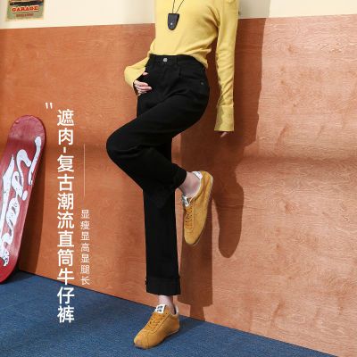 百亿补贴:ETBOITE2025秋季复古潮流直筒牛仔裤女设计感高腰显瘦翻边修身百