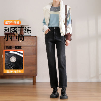 百亿补贴:茵曼通勤时尚烟管直筒裤女秋冬款显瘦百搭法棍裤牛仔裤子