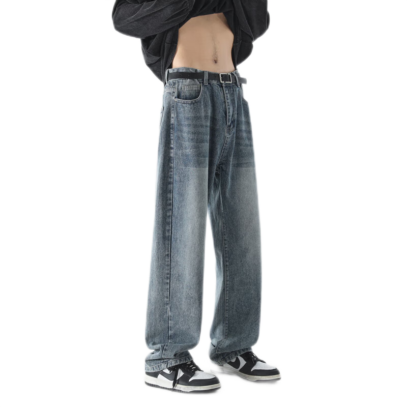 百亿补贴:QGF 美式复古直筒牛仔裤子男士女春秋季高街潮牌宽松阔腿裤休闲长裤 DSA007-K8463 蓝色 2XL [建议130-150斤]