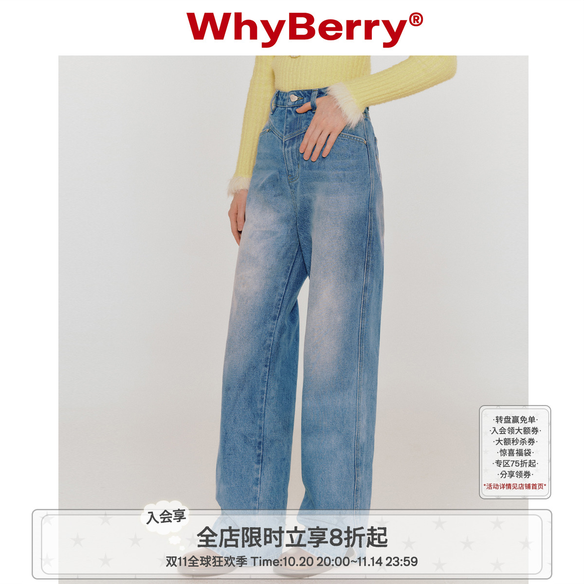 WhyBerry 23AW“经典重塑”复古牛仔裤淡蓝直筒休闲裤子女秋设计
