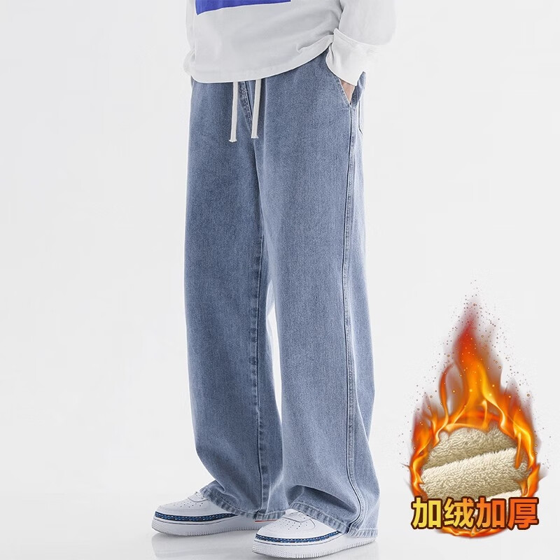 百亿补贴:罗蒙(ROMON)牛仔裤男浅蓝色秋冬季青少年直筒百搭宽松加绒阔腿裤拖地裤男装 BK110浅蓝色加绒 L (125-135斤)