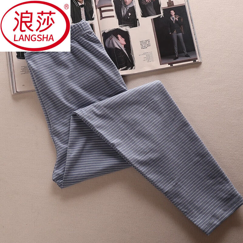 百亿补贴:浪莎(LangSha)2025冬季棉质男士秋裤修身无痕复古条纹青年打底裤保暖裤全棉衬裤 蓝色 XL 175 170-175