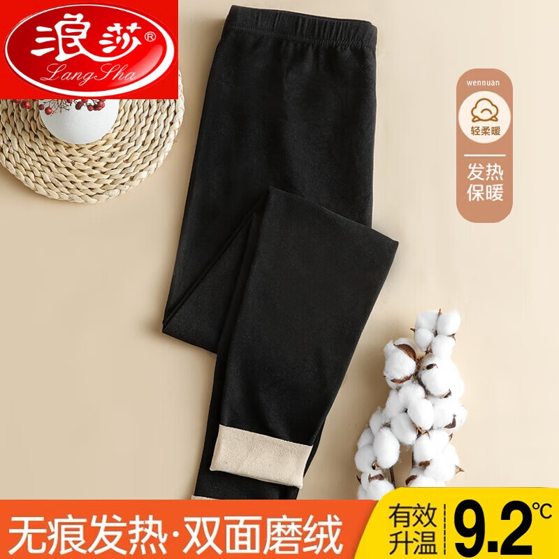 百亿补贴:浪莎(LangSha)德绒秋裤女发热无痕加厚薄绒德保暖裤女学生纯棉毛裤中高腰打底裤 黑色-AB面无痕发热 3XL 140-170斤