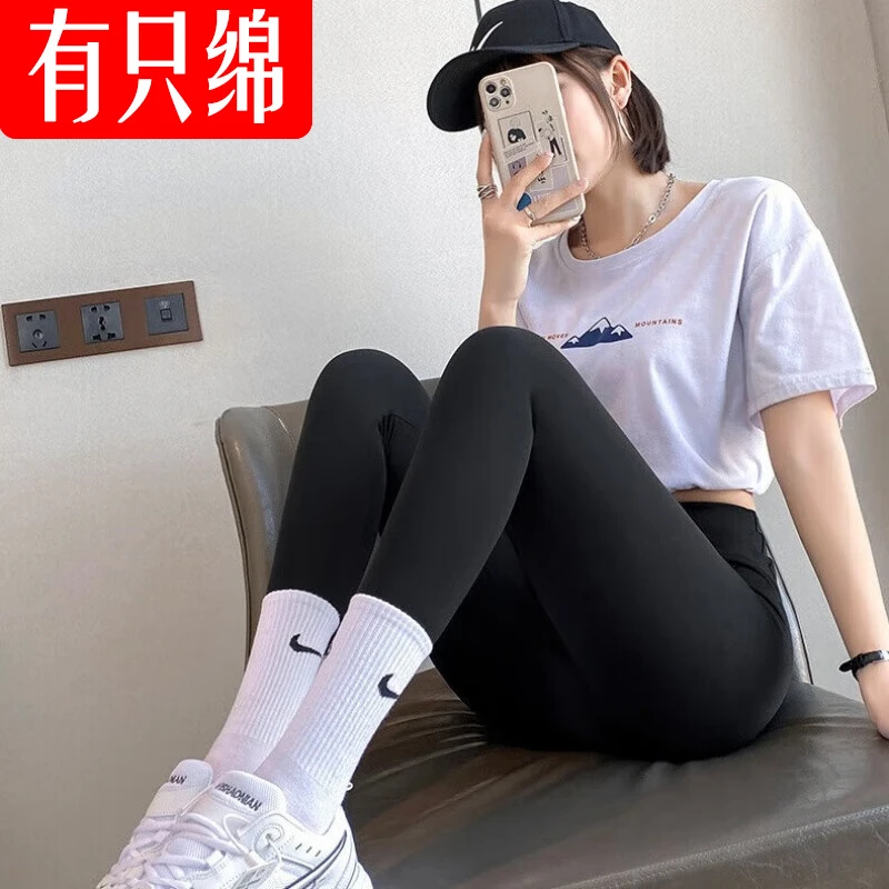 有只绵【精选】微喇打底裤可外穿紧身裤瑜伽健身显瘦美腿弹力打底裤袜 黑色 四季款 1条 M (适合80-105斤)