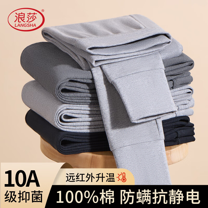 百亿补贴:浪莎秋裤男士纯棉抑菌舒适透气柔软打底棉毛裤薄款不加绒情侣保暖裤冬
