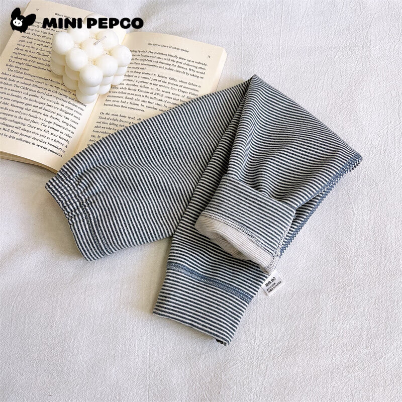 小猪班纳(PEPCO)校服内搭儿童保暖裤女童秋裤无痕打底裤男童打底秋裤 保暖裤-蓝色条纹 150 cm