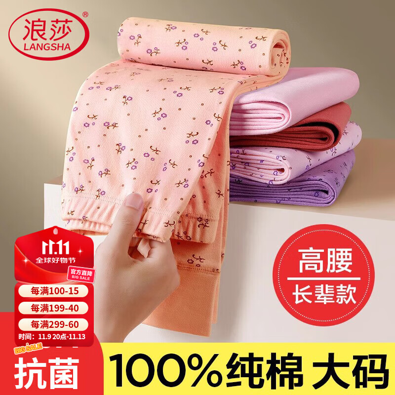 百亿补贴:浪莎秋裤女士纯棉中老年人妈妈打底裤大码全棉毛裤宽松保暖高腰花衬裤