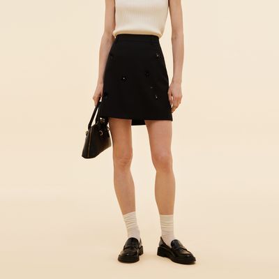 百亿补贴:歌莉娅秋季新品精纺羊毛钉珠短裙(有打底裤)1E8L2A300