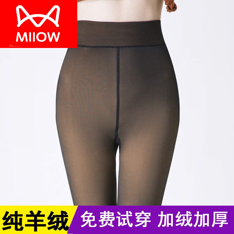 百亿补贴:猫人羊毛绒打底裤女空乘灰一体透肤假透肉秋冬季加绒厚连裤袜保暖棉裤 黑透肤(550克加绒】踩脚款 1条 L (体重110-120斤)