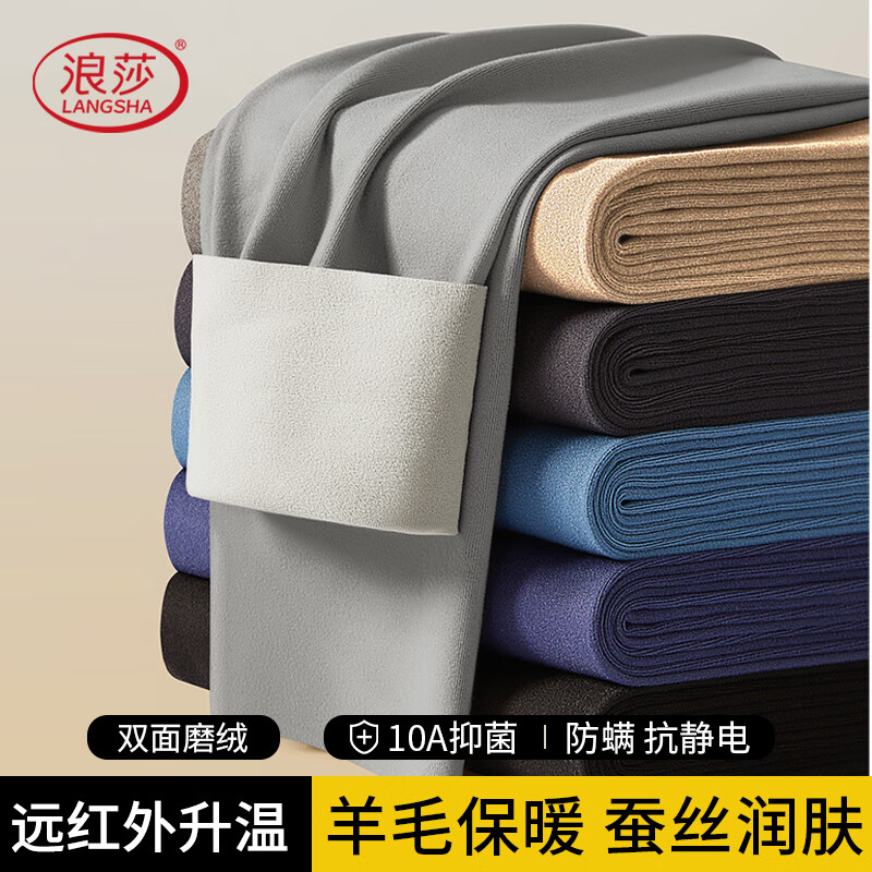 百亿补贴:浪莎男士秋裤男羊毛蚕丝随心裁AB面舒适透气抑菌发热薄款打底保暖裤冬