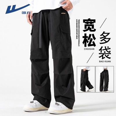 百亿补贴:回力美式秋冬男工装裤潮牌宽松百搭直筒运动伞兵裤抽绳冲锋休闲裤