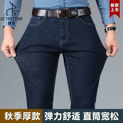百亿补贴:牛仔裤男士秋冬厚款宽松直筒高腰弹力中年商务男裤休闲耐磨长裤子