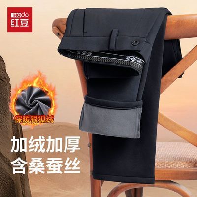 百亿补贴:红豆【加绒】直筒休闲裤含桑蚕丝四面弹抗皱免烫加厚针织混纺秋冬