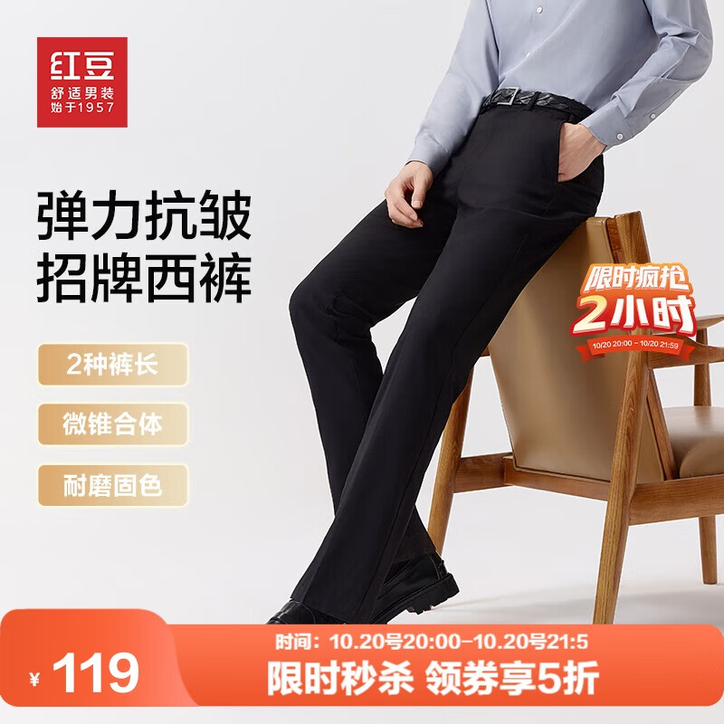 百亿补贴:墨玉黑S1耐磨 29 【防风免烫】红豆休闲裤男款25秋季加厚直筒男士休闲3D高弹裤