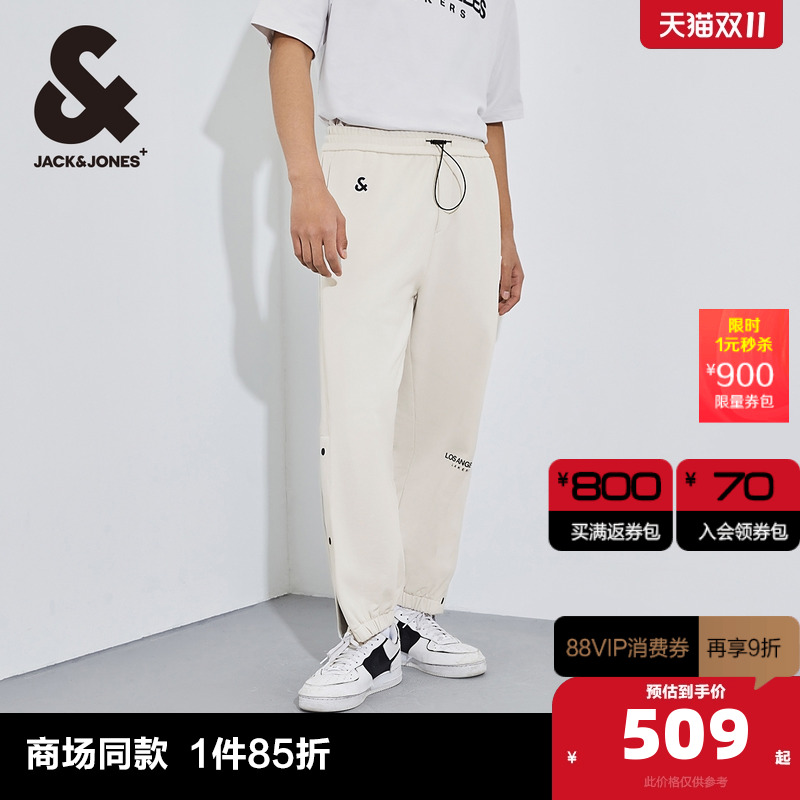 G01石灰花灰 175/80A 杰克琼斯outlets春季NBA联名运动风酷帅纯棉束脚休闲裤卫裤子男装