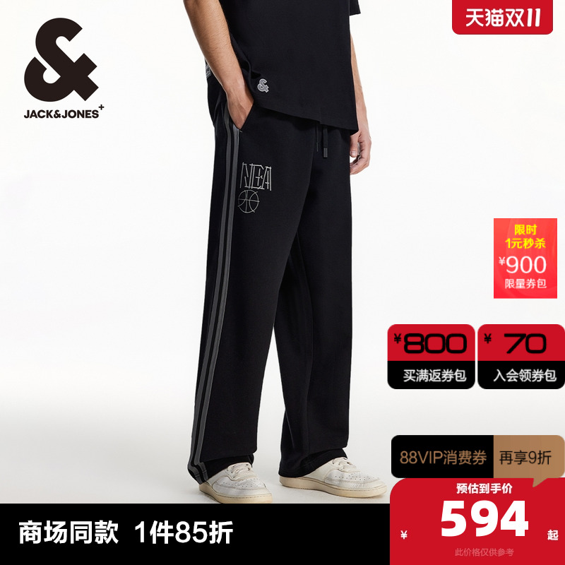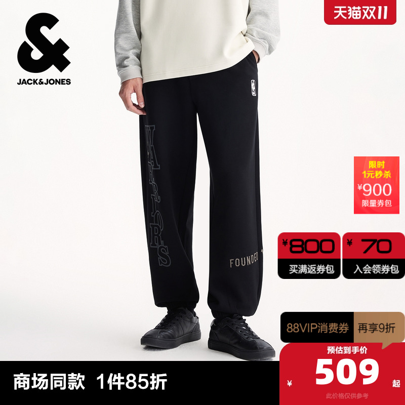 E40黑色 28 杰克琼斯NBA联名款秋季精致刺绣运动裤潮时尚宽松休闲裤长裤男款