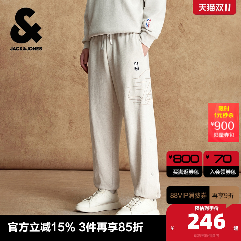 C42岩灰色 28 杰克琼斯NBA联名款男装秋季百搭字母纯棉长裤舒适束脚休闲裤裤子