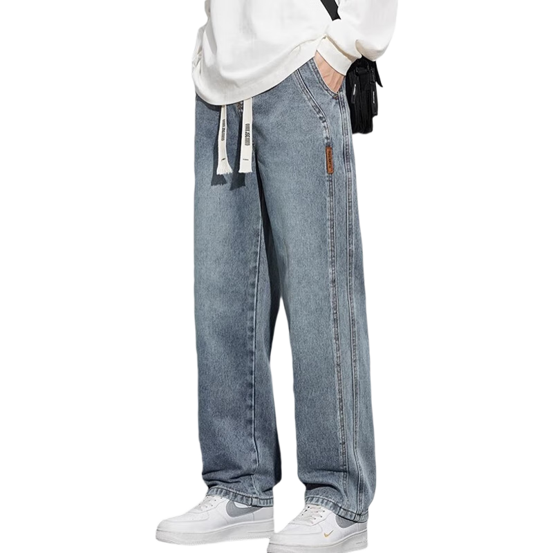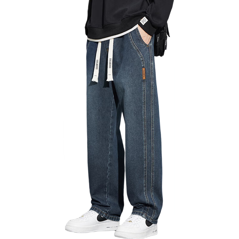百亿补贴:真维斯(Jeanswest)2025新款阔腿牛仔裤男士秋季抽绳松紧腰宽松男款直筒宽松休闲裤子 中蓝色 XL 【130-155斤】