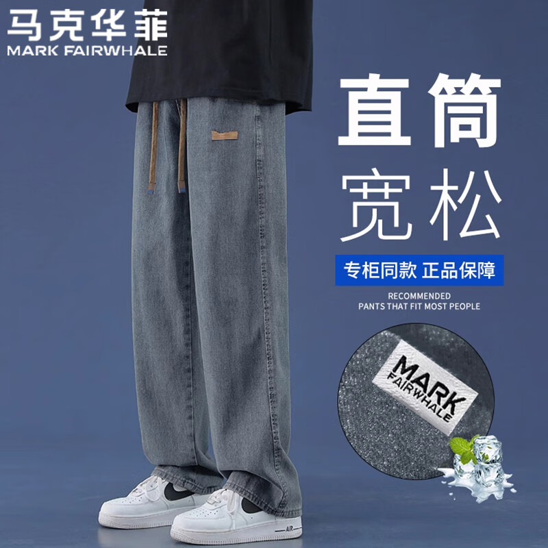百亿补贴:马克华菲牛仔裤男春秋季直筒休闲宽松复古户外美式薄款修身长裤 复古蓝 S
