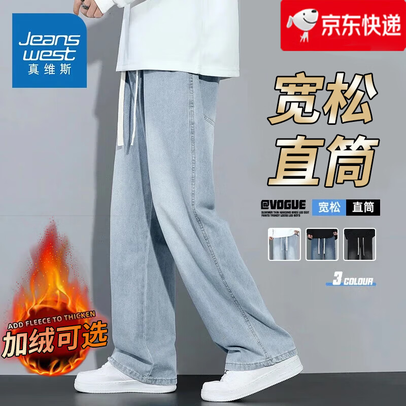 百亿补贴:真维斯牛仔裤男2025春秋季宽松直筒阔腿裤子最新款休闲长裤男生秋冬加绒 20520-1/ SJ113浅蓝色 L