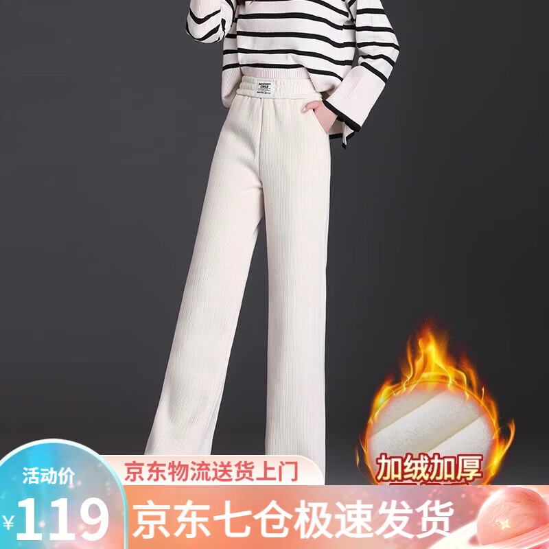 萝美酱雪尼尔加绒加厚裤子女冬天羊羔绒棉裤秋冬女士直筒休闲阔腿裤女裤 杏色银狐绒【适合南方地区】 M 【建议99-110斤】