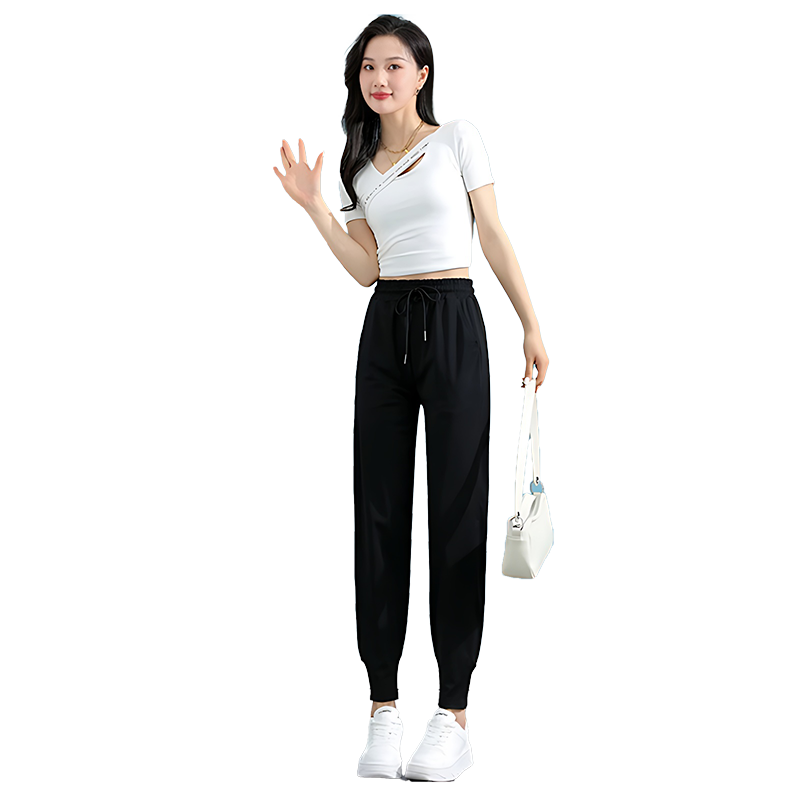 浪莎冰丝运动裤女夏季薄款宽松休闲裤哈伦束脚裤黑色显瘦速干女士裤子