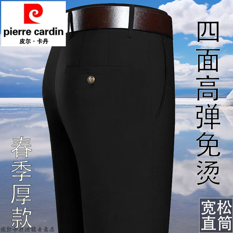 百亿补贴:皮尔卡丹品牌桑蚕丝垂顺高弹力休闲西裤男士春秋季厚款高腰免烫直筒长裤子 黑色【春秋厚款】 29 腰围2尺2