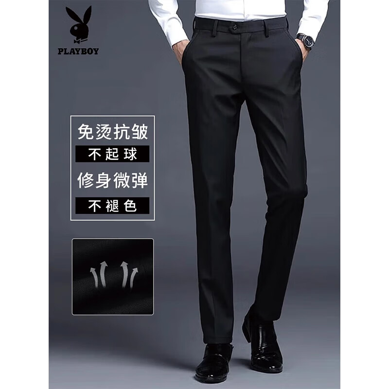百亿补贴:花花公子西裤男士春秋新款正装商务休闲裤修身免烫抗皱职业长裤黑色西装裤 黑色 31 建议125-132斤