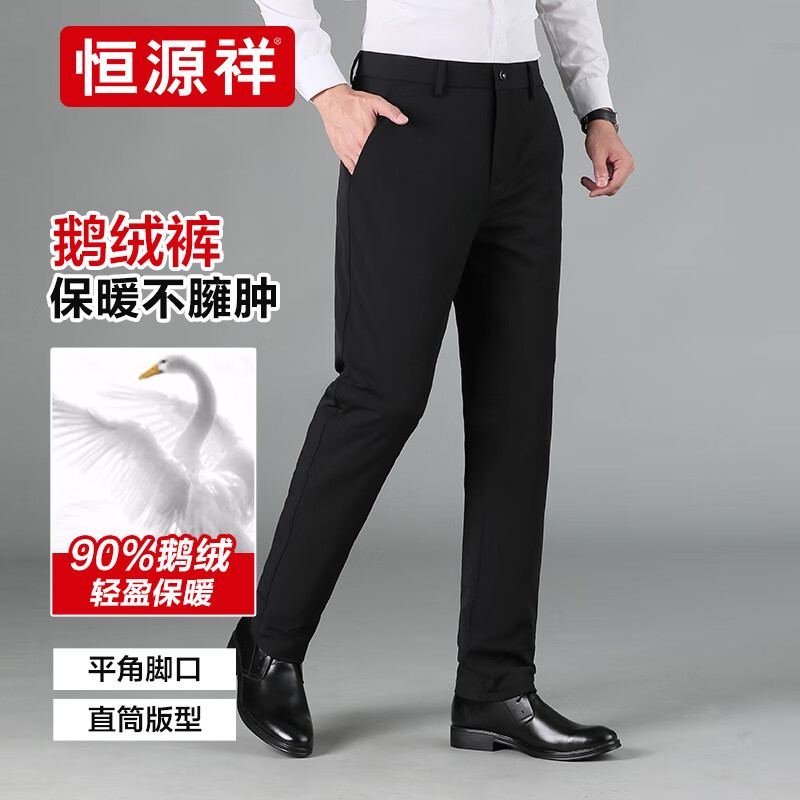 恒源祥外穿鹅绒裤男90白鹅绒2025秋冬新款男士商务休闲保暖直筒羽绒西裤 黑色A803 33 【建议140-150斤】