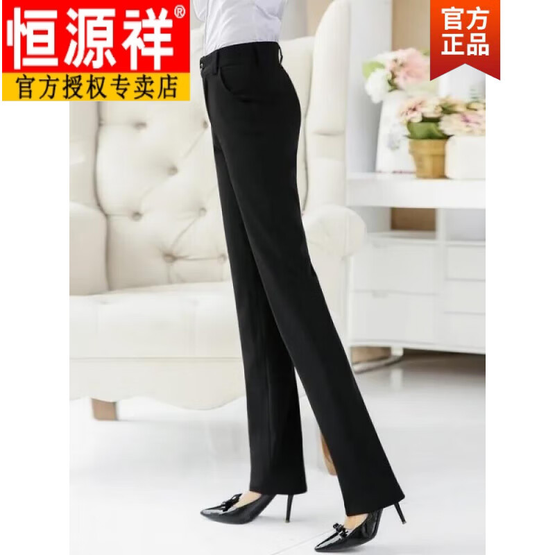 恒源祥官方西裤女2025春夏新款弹力直筒裤长裤休闲工作裤黑色西装裤宽松 黑色直筒旗舰款 2XL 115-125斤