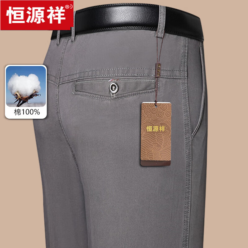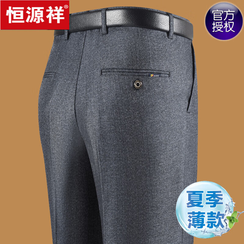 百亿补贴:恒源祥高档休闲裤男士秋冬加绒保暖直筒免烫抗皱西装裤中年爸爸弹力长裤 9222B 灰色【夏季款】 35 (2尺8)