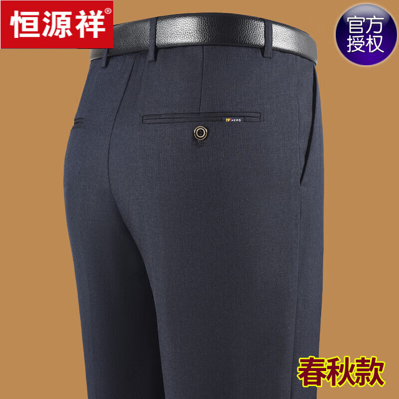 百亿补贴:恒源祥休闲西装裤男春秋新款中老年爸爸宽松直筒裤秋冬免烫长裤 春秋款019藏青 34 【2尺7腰围145-155斤】
