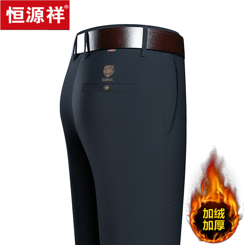 百亿补贴:恒源祥高档休闲裤男士秋冬加绒保暖直筒免烫抗皱西装裤中年爸爸弹力长裤 9222R 藏青【加-绒款】 33 (2尺6)
