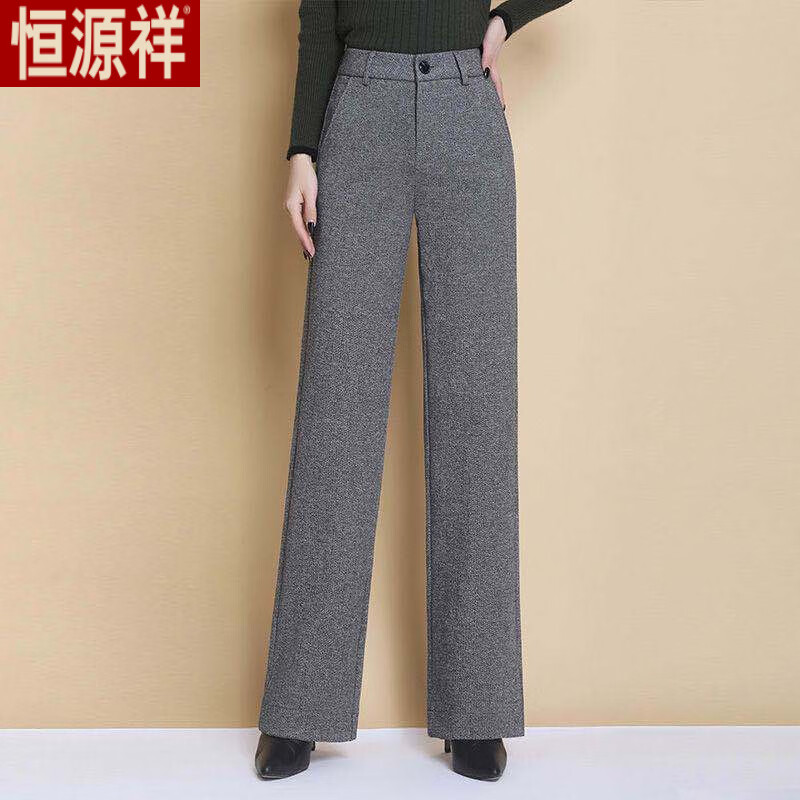 恒源祥2025秋冬新款毛呢阔腿裤子女高腰加厚宽松休闲长裤直筒裤西装裤 灰色/秋冬款 阔腿裤 L 28/105-115斤