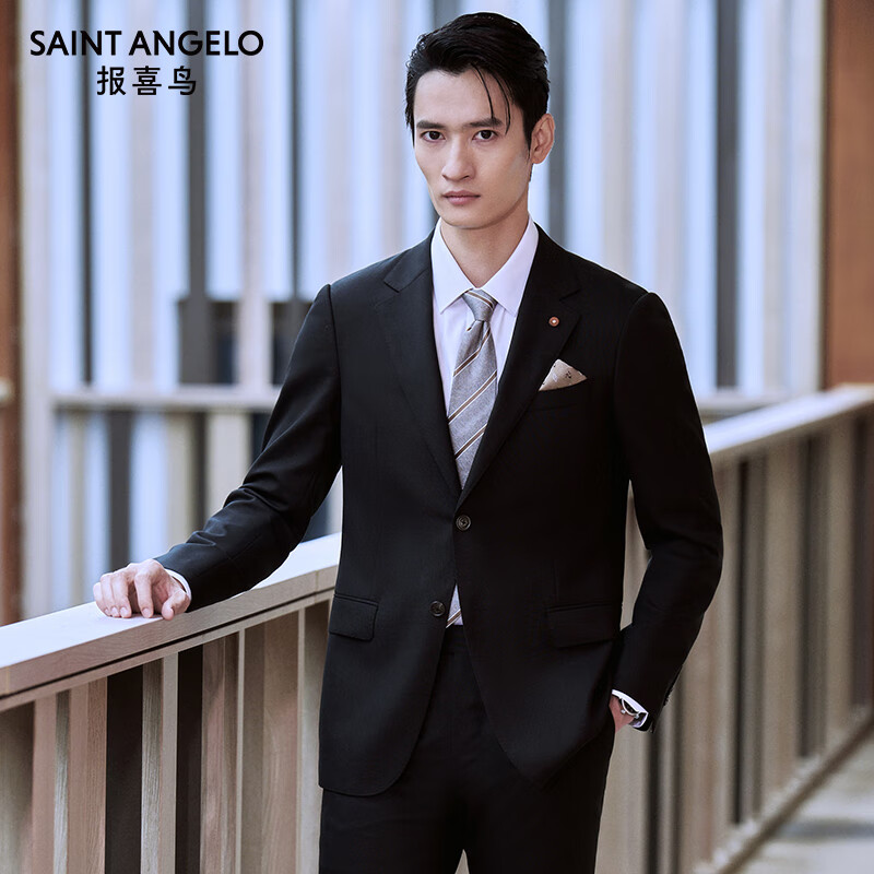 报喜鸟西服套装男装【澳洲羊毛/人生第一套】商务正装通勤西装西裤套装 A款(曜石黑抗皱金羊毛) 48 A(175/96) /请备注腰围或裤子